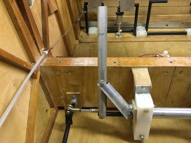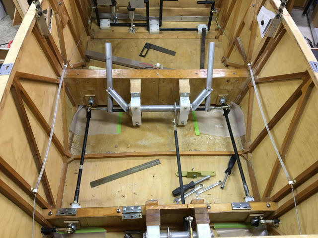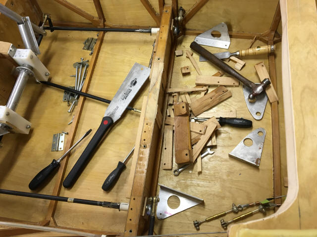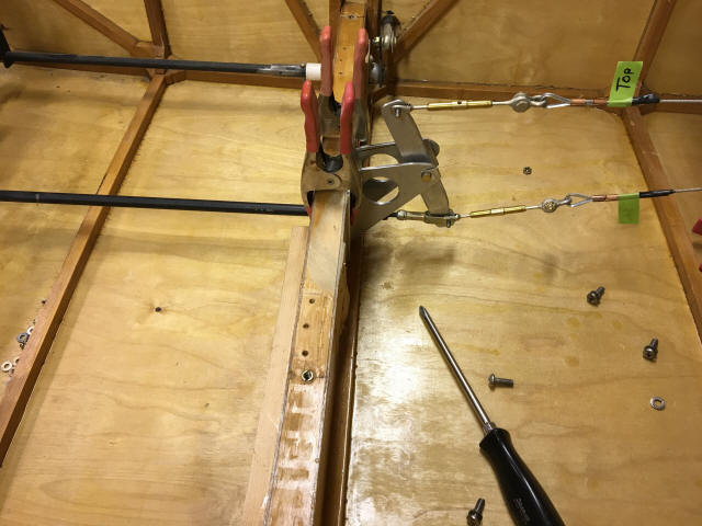 Here's how the controls looked when I got the sling seat out of the way. I removed the pushrod from the stick to the belcrank behind the aft spar.