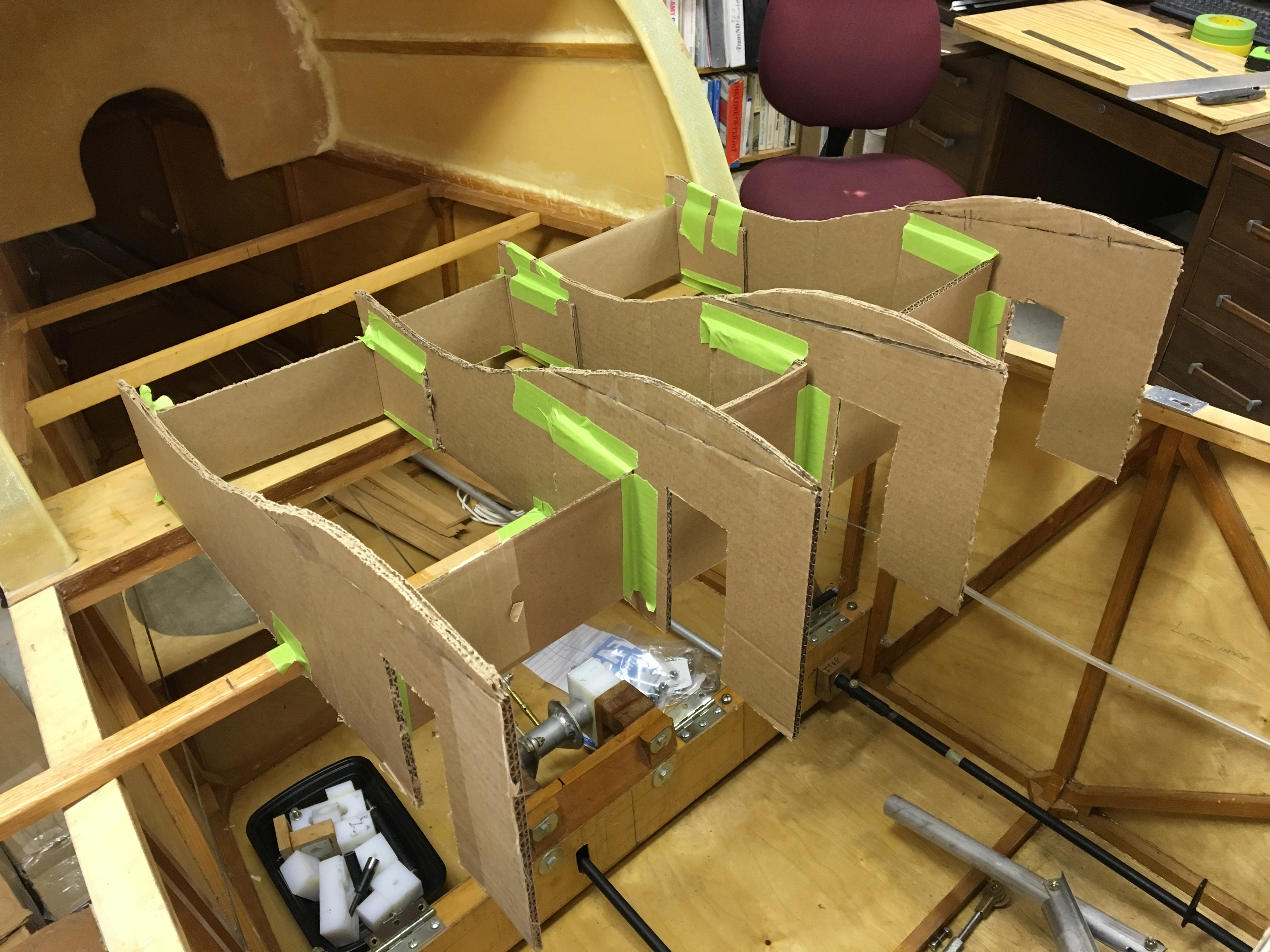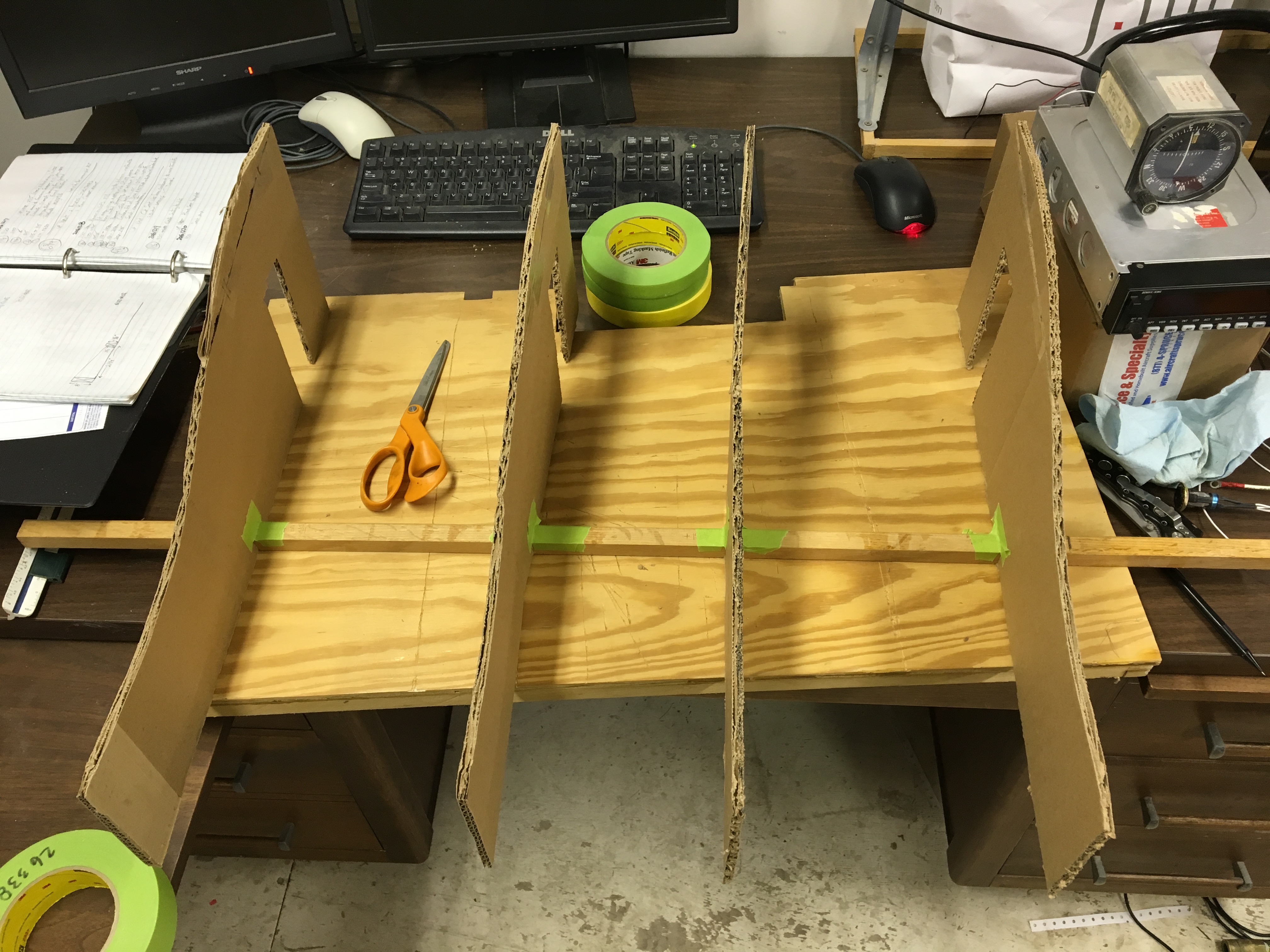 I started by cutting a cardboard template of the existing space between the spars.Repeat until the space is represented accurately.