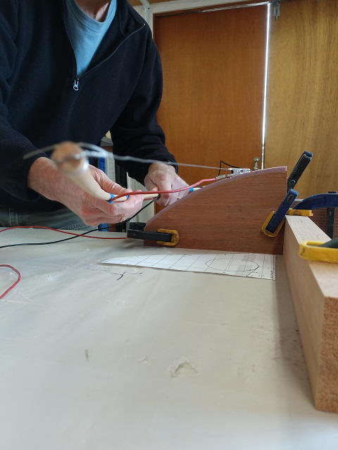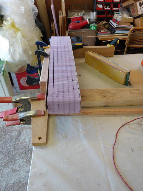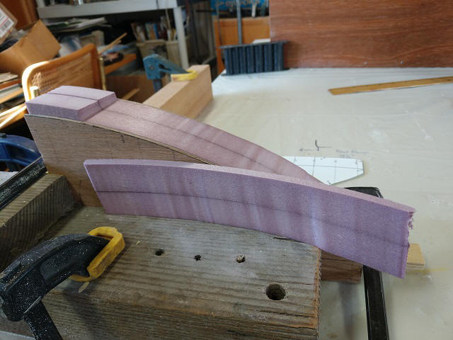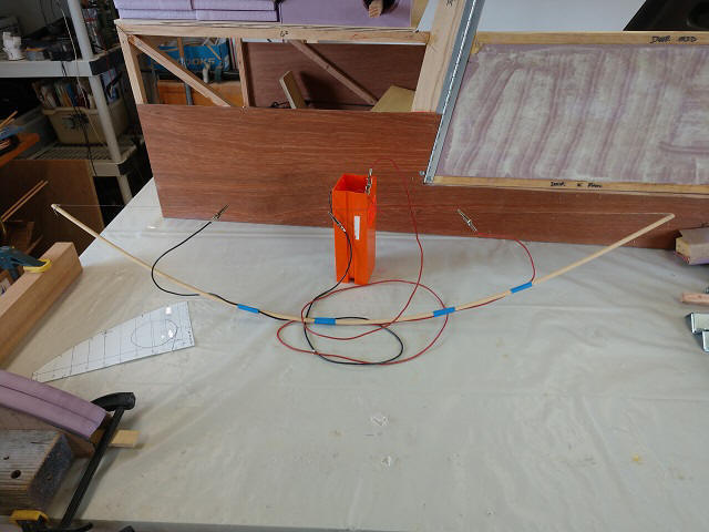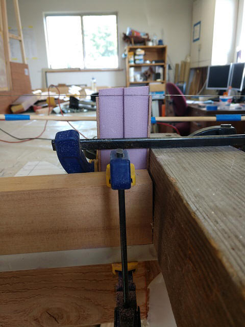 the wire about 15" apart, cut 2 @ 1" XPS foam blanks, check! Moron in the shop,