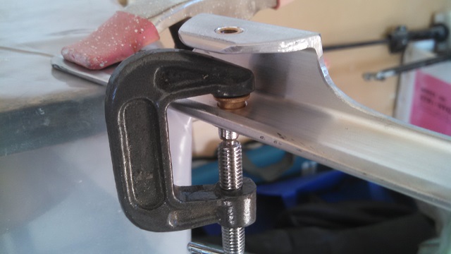 My IA/ A&P Neal helped with machining new bolt holes in the backing plate.