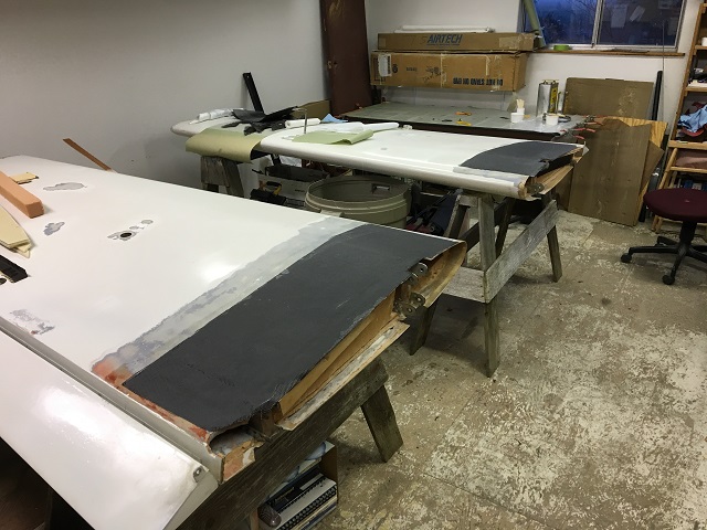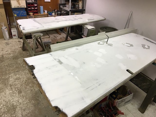 Then to get on to the task of filling and sanding the bottom wing skin repairs and prepping for paint.