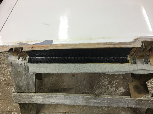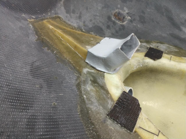 I laid up carbon fibre flanges to support replacing the missing skin as removed in the photos above