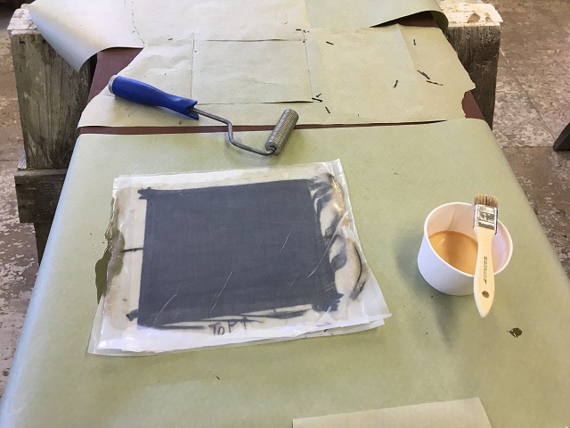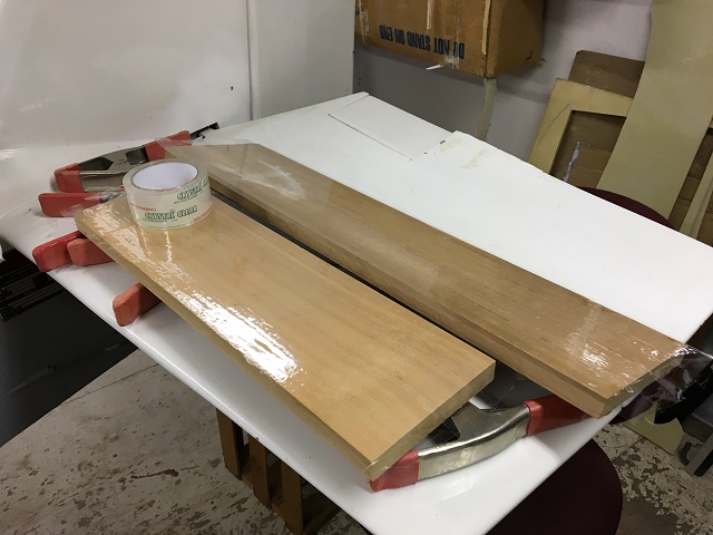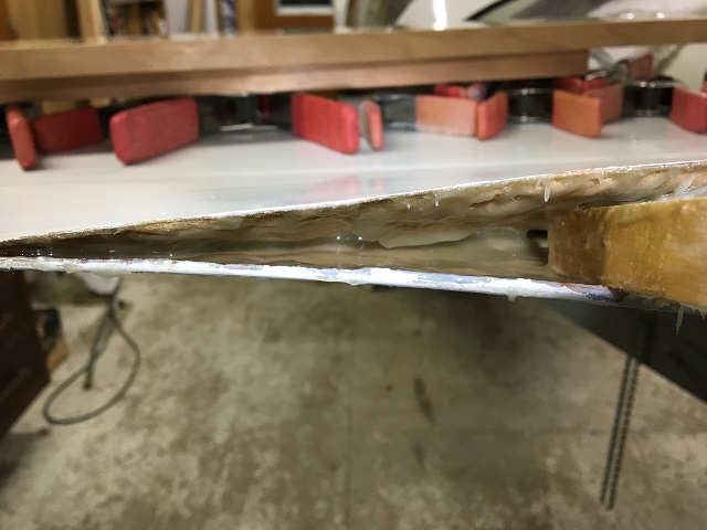 All materials wet out with AeroPoxy and roller compressed into contact to remove