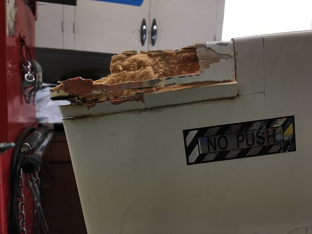 The elevator trailing edges were undamaged but the skins were separated edges somehow.