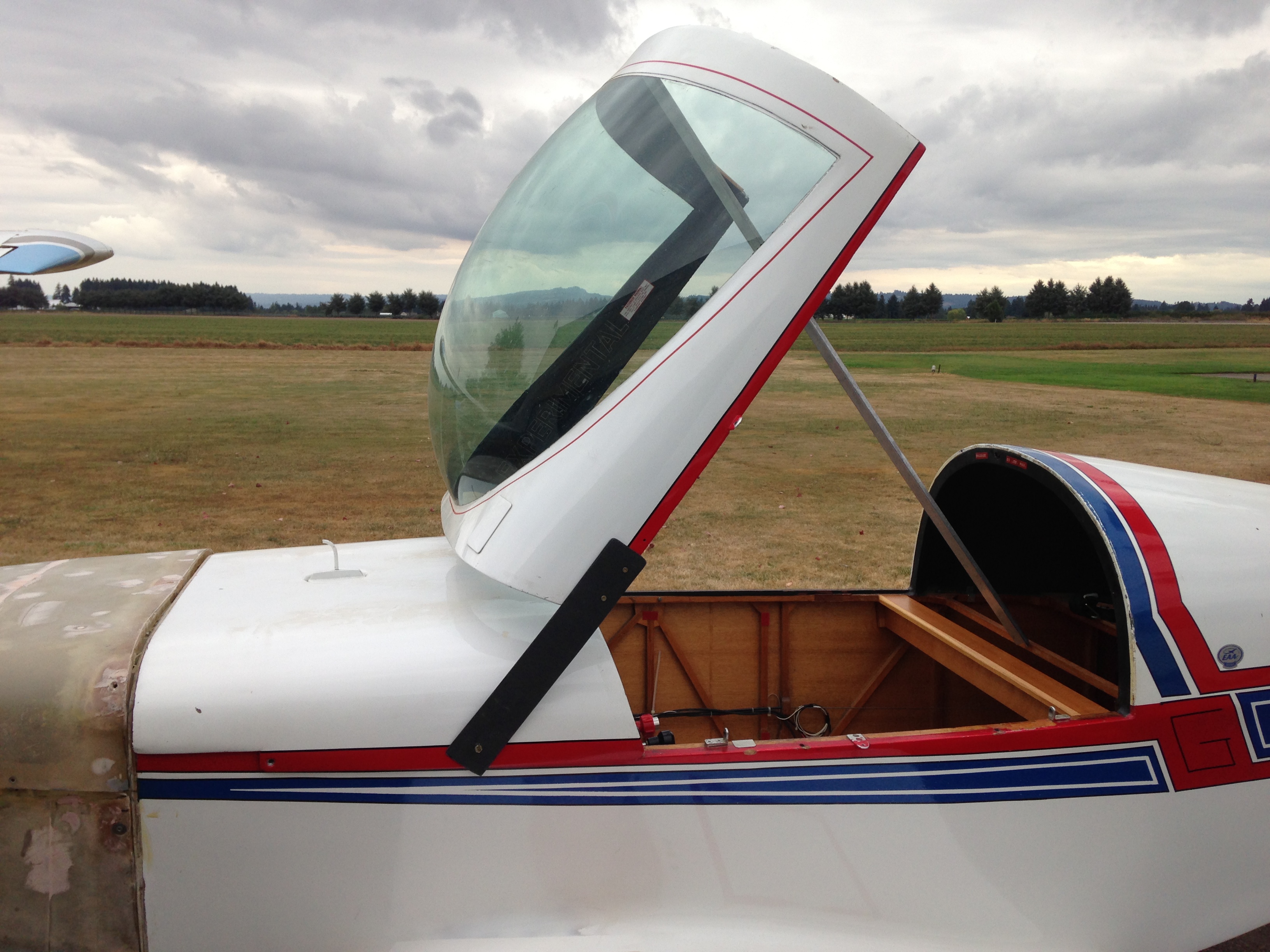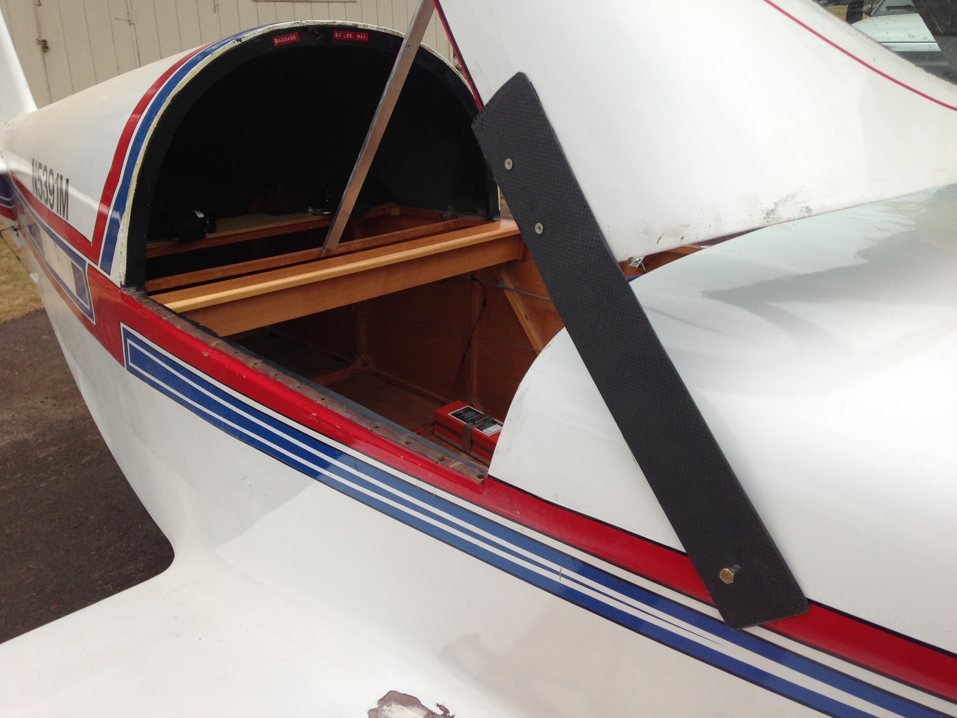 Mark cited a problem where he had to clearance the hinge blanks around the curved sides of his installation. I followed his recommendation and built the pivot brackets Mark designed about ½” taller and mounted them on top of the longerons with the pivot about 18” aft of the firewall.