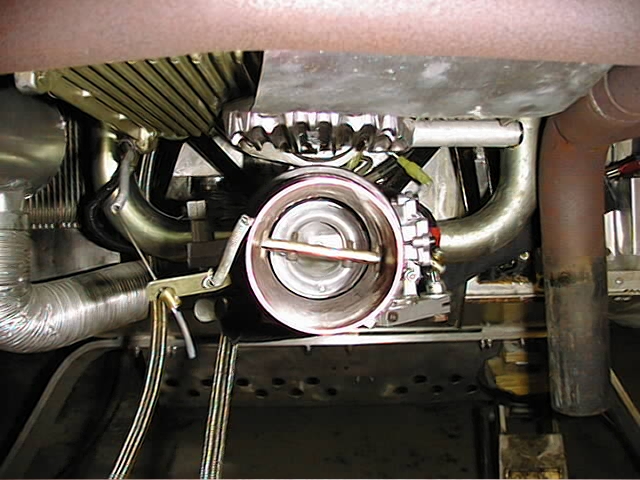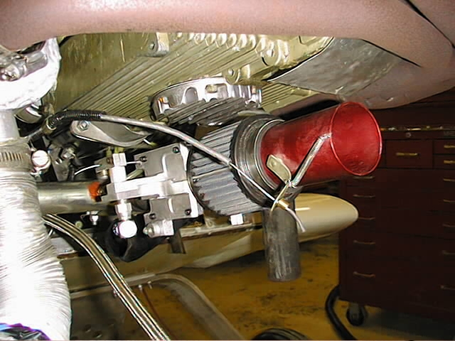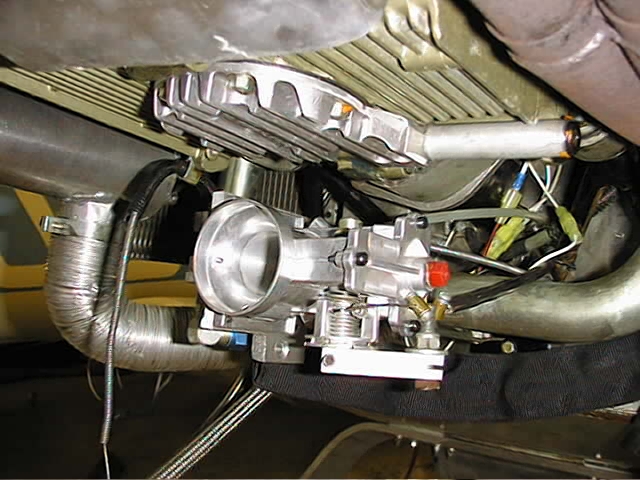 I found these shots from a link off Mark Langford's site. Here's a nice looking installation, but I'd prefer to have an air filter for all the air entering the carb...