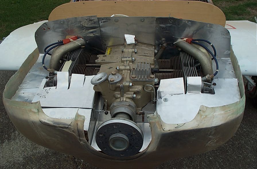 I found fitting the baffle to the shape of the wide cowl likely to create an overly large plenum. I purchased a AeroVee baffle kit. It arrives as a number of flat sheets with precision laser cut edges. The baffle trim shapes matches the VW engine components exactly. The $100 price for pre-cut material saved both time and money. Since the cowl for a Sonex and the KR are shaped differently, we trimmed the outside edges of the baffle components to match the curves of the KR cowl I am using.