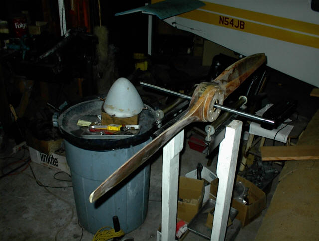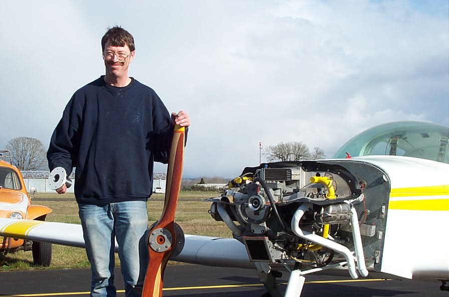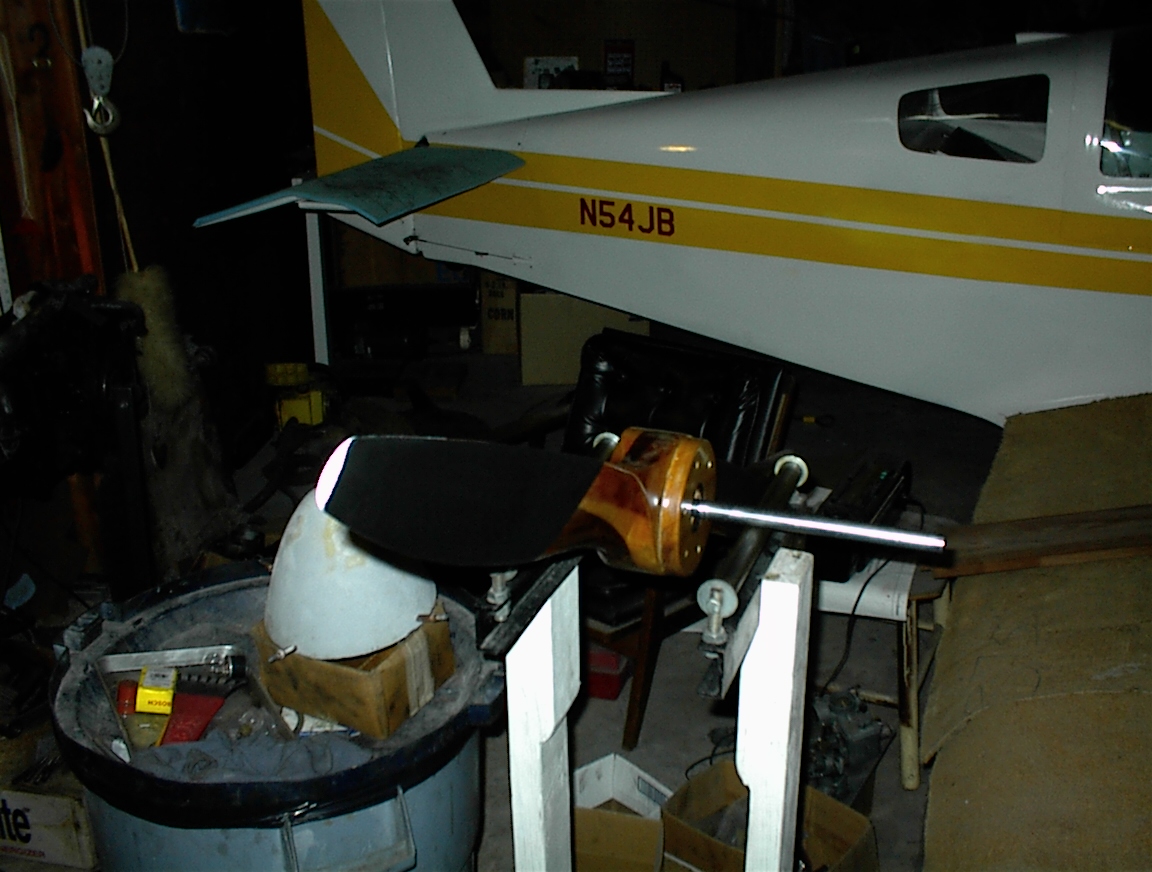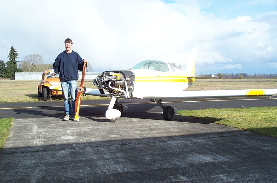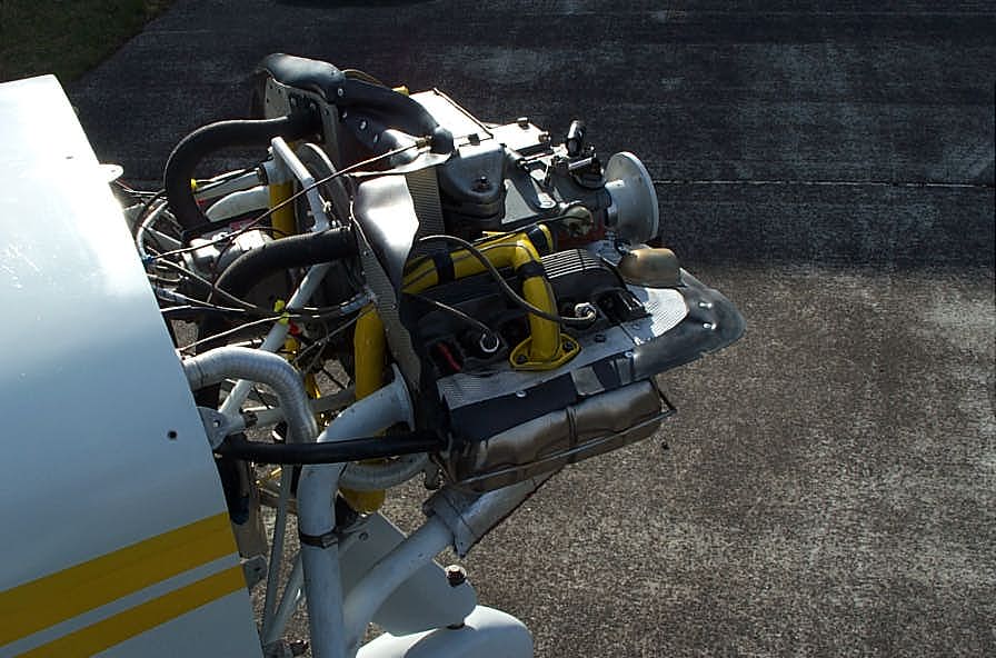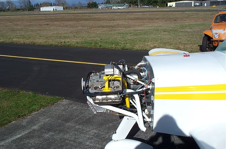 A VW 1641cc engine is installed. Joe designed a prop bearing system and an extended prop flange