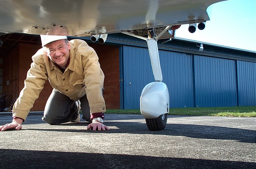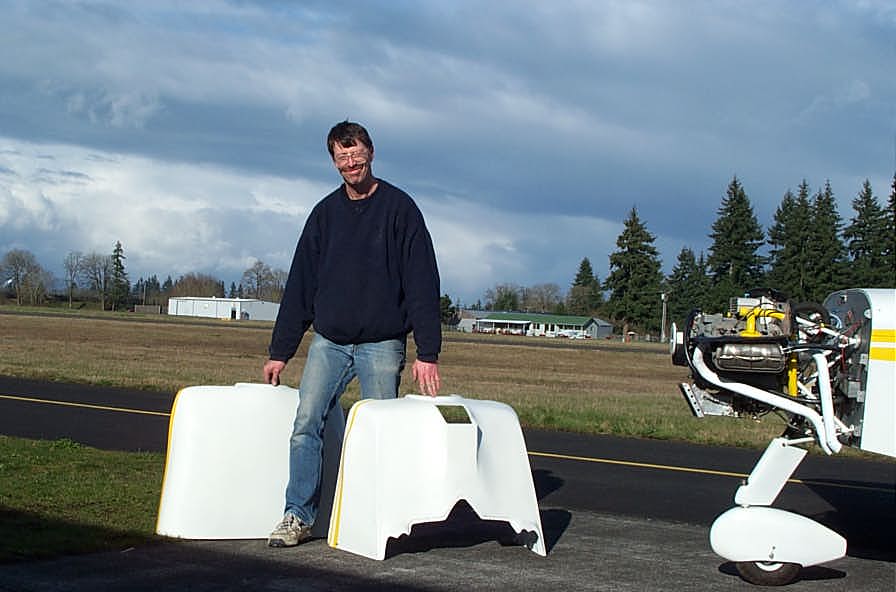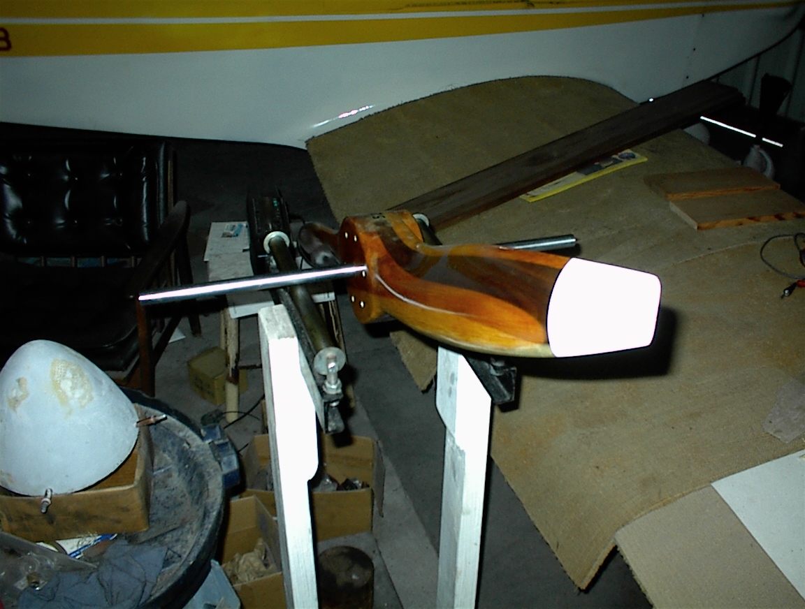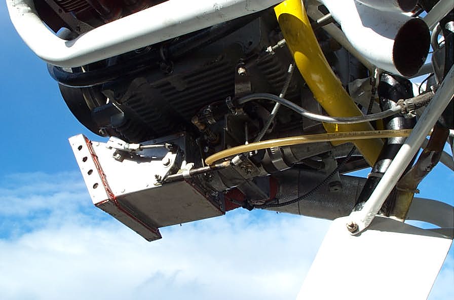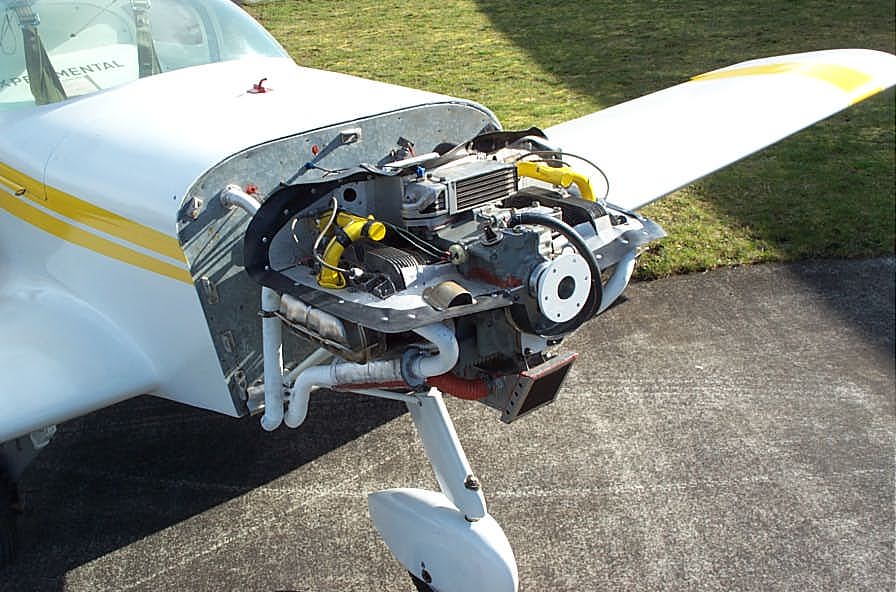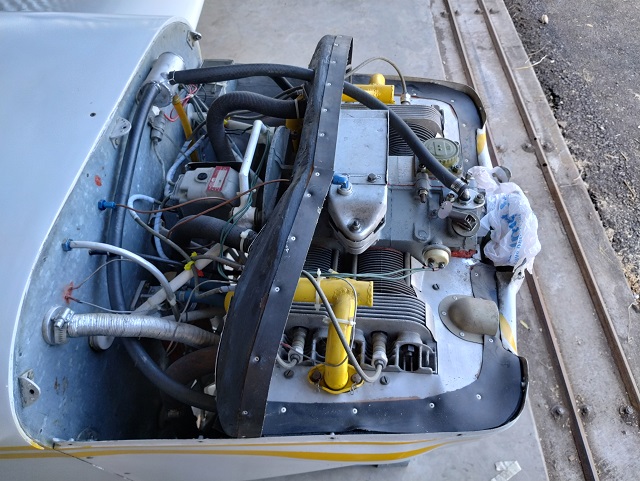A VW 1641cc engine is installed. Joe designed a prop bearing system and an extended prop flange